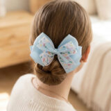 A voluminous baby-blue tulle bow with a sheer sprinkle-print overlay and a dainty satin ribbon knot at the center. Sweet, whimsical, and birthday-cake perfect.